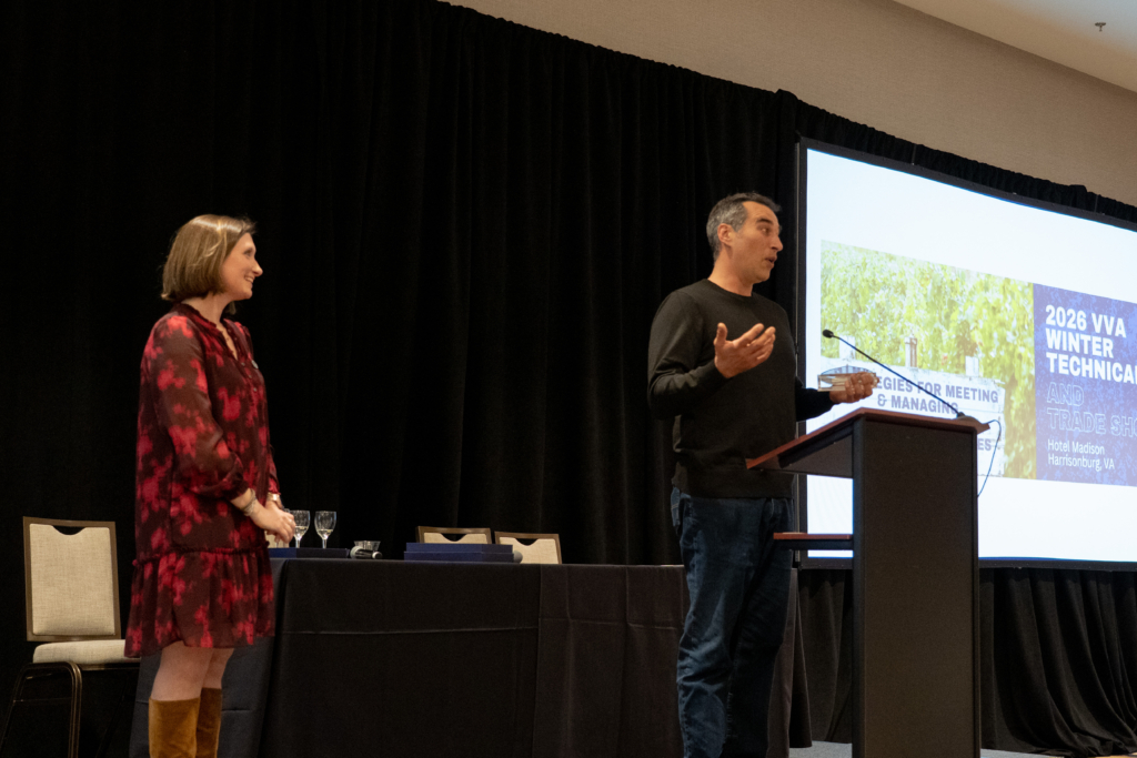 One of the highlights of the conference was the presentation of the 2026 Grower of the Year Award. Newly appointed Virginia Secretary of Agriculture, Katie Frazier, presented the honor to Damien Blanchon of Afton Mountain Vineyards. Damien has dedicated more than 20 years to Virginia’s wine industry and has become widely respected for his deep commitment to vineyard stewardship and sustainability. His thoughtful approach to farming, combined with a clear passion for the land, makes this recognition especially well deserved. We look forward to seeing his continued impact on the future of Virginia viticulture.