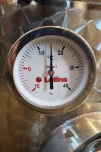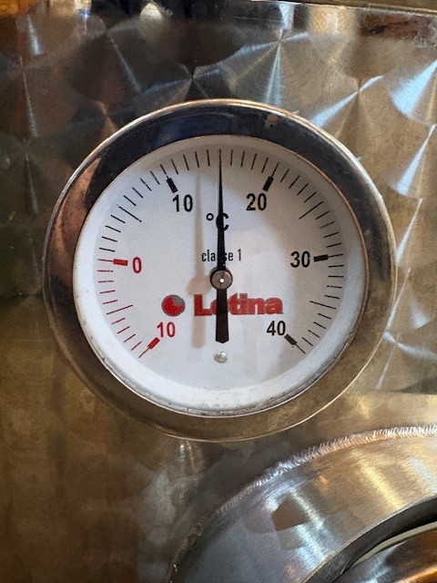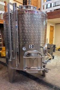 Letina 23HL / 600 Gallon Stainless Steel Jacketed Wine Fermenter. Tank is in great shape, has manhole on the top, side as well as front door for reds and two valves. Also has measurement tube for volume. Easily loaded on flatbed truck or medium trailer.